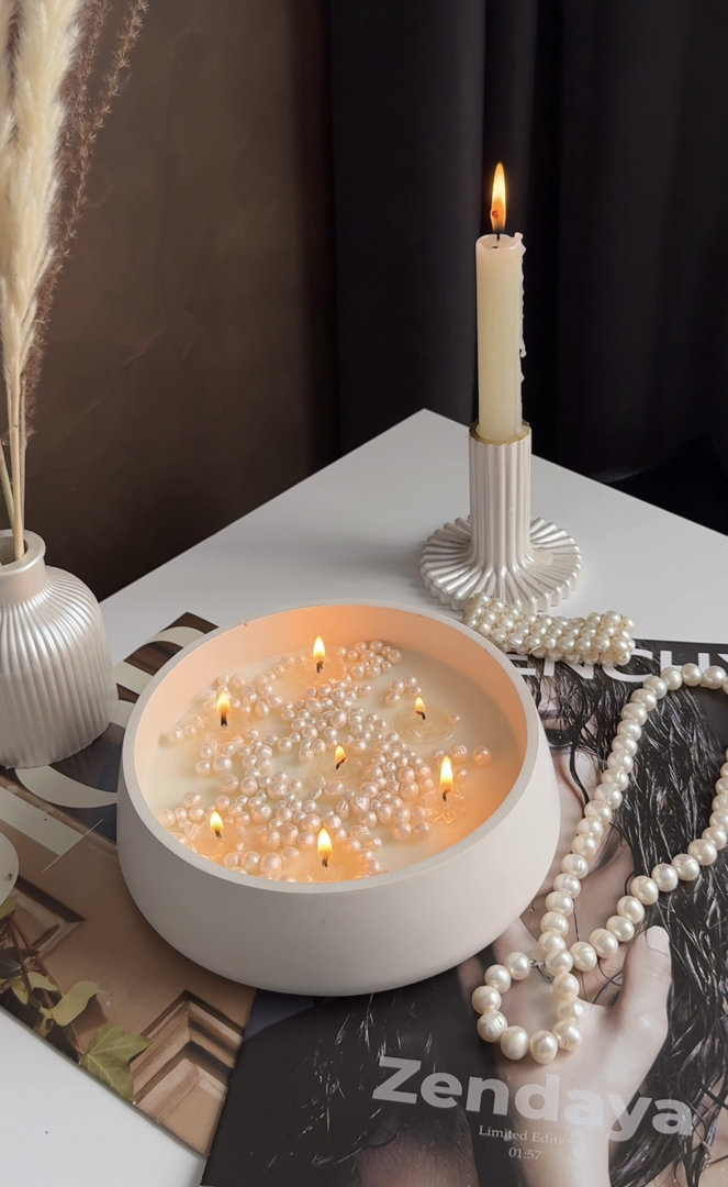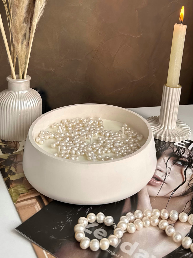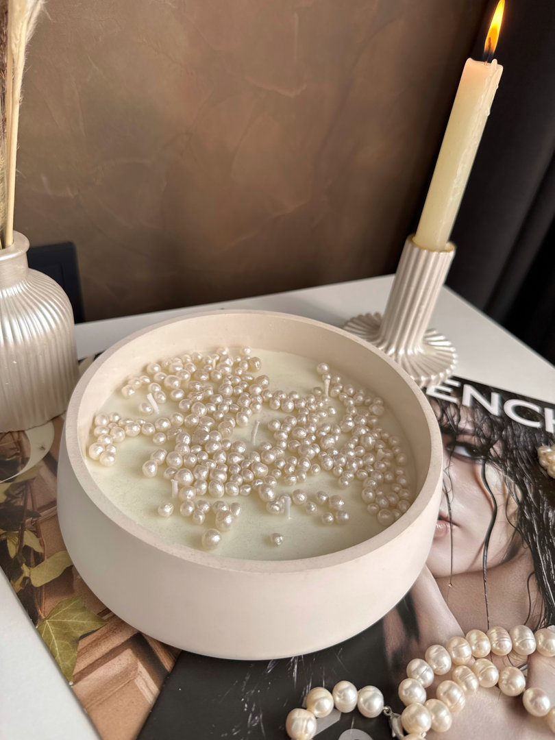 Эта свеча создана для моментов, когда нужно остановиться, отдохнуть и очистить мысли. Ее нейтральность позволяет ей гармонично вписаться в любой интерьер и дополнить его своим тихим, теплым сиянием. Чистота и натуральность: Смесь премиального кокосового и соевого воска без отдушек. Элегантный дизайн: Стильная чаша диаметром 17 см с декором из жемчуга. Долгое горение: Большой объем воска 450 мл обеспечивает до 50 часов мягкого, уютного света. Эта свеча полностью изготовлена в ручную. Кашпо отлито из сверхпрочного гипса. Состав: 50% кокосового воска, 50% соевого воска, 7 хлопковых фитилей.