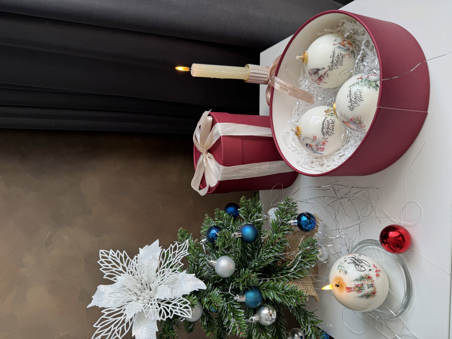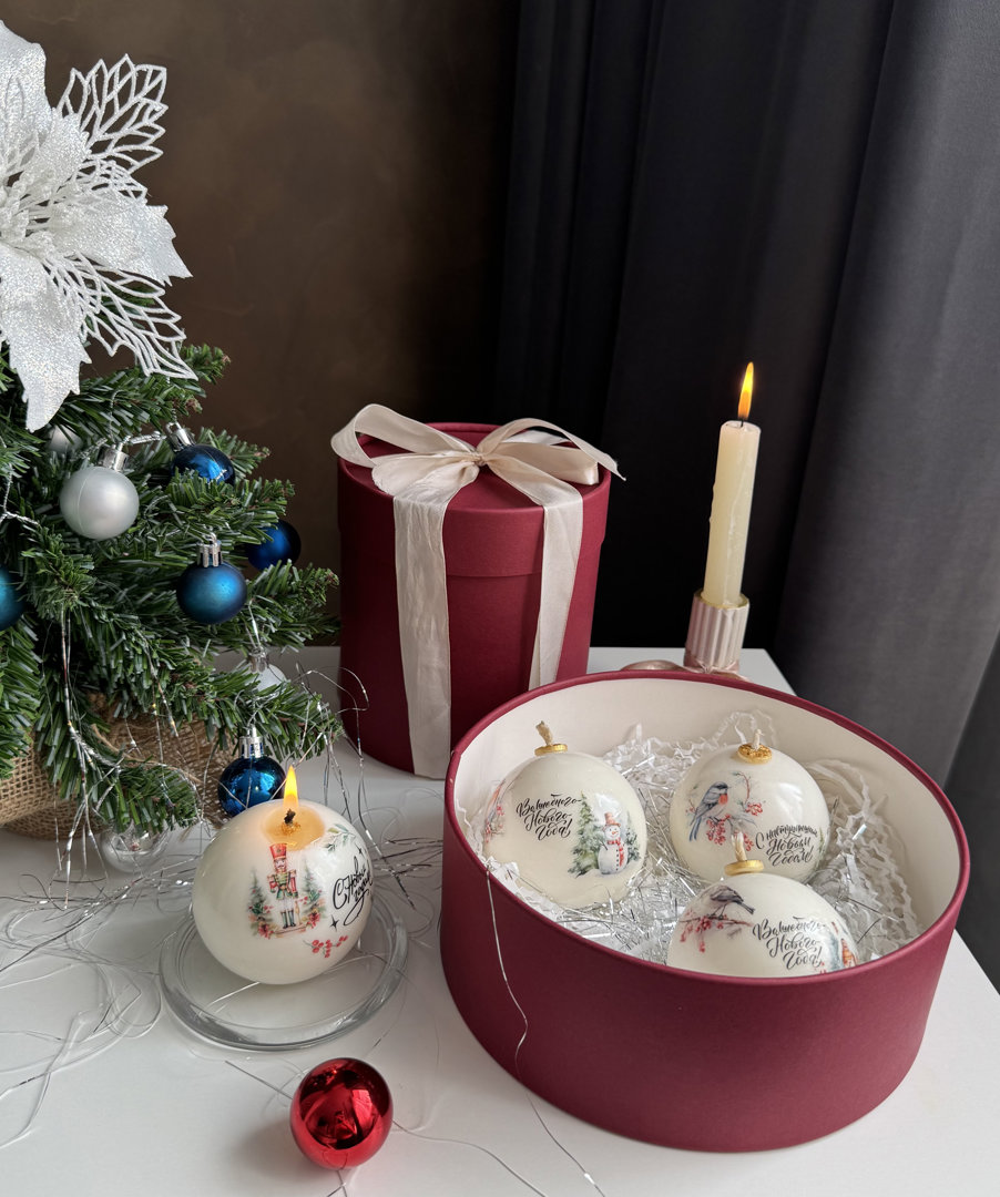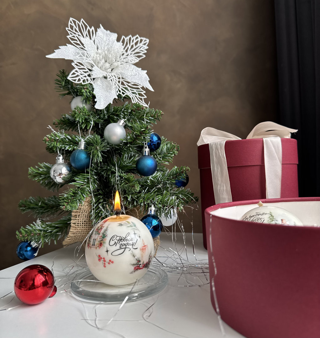 Эксклюзивный набор из трёх керамических свечей-игрушек для создания праздничной атмосферы. Каждое изделие станет украшением дома и источником тёплого живого огня. Каждая свеча в этом наборе — уникальна и создается специально для вас! После оформления заказа я напишу вам в чат, и мы вместе определимся с окончательным дизайном ваших будущих свечей-игрушек, чтобы они идеально соответствовали вашему вкусу и стилю праздника. Безопасность и натуральность: Свечи изготовлены из натурального соевого воска, который гарантирует чистое горение без копоти и вредных веществ . Все материалы, включая декор, полностью безопасны для вас и вашего дома. Безупречное качество: Каждая свеча весом 160 грамм покрыта глянцевым лаком, что делает её неотличимой от нарядной фабричной елочной игрушки, но с особой, рукотворной душой. Готовый подарок: Набор поставляется в готовой праздничной упаковке, украшенной нарядным бантом. Вам не нужно ни о чем беспокоиться — просто вручите коробку с уникальным и продуманным презентом